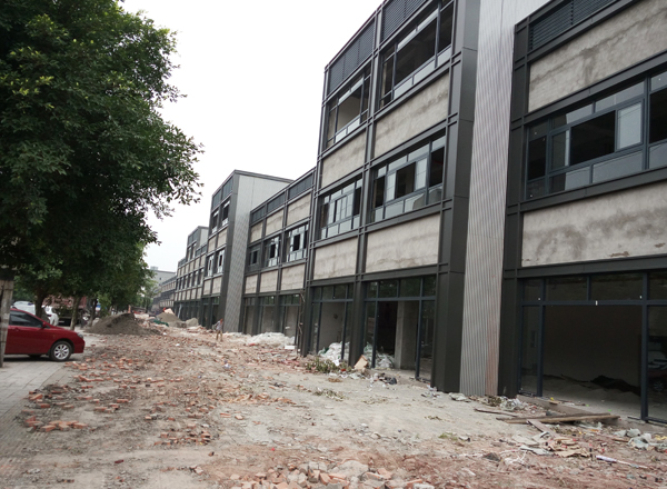 重慶銀翔集團是一家集摩托車和發動機研究、開發、制造、銷售于一體的大型科工貿企業集團,在新廠的建設中,經過重慶華發裝修設計師與該集團項目負責人溝通,整個建筑外墻的部分采用幕墻的結構。幕墻是建筑的外墻圍護,不承重,像幕布一樣掛上去,故又稱為“帷幕墻”,是現代大型和高層建筑常用的帶有裝飾效果的輕質墻體。由面板和支承結構體系組成的,可相對主體結構有一定位移能力或自身有一定變形能力、不承擔主體結構所作用的建筑外圍護結構或裝飾性結構。
